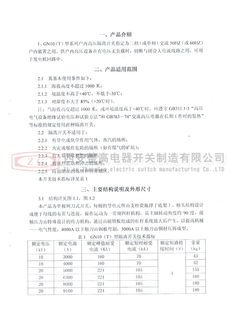 GN10系列戶內(nèi)高壓隔離開關(guān)