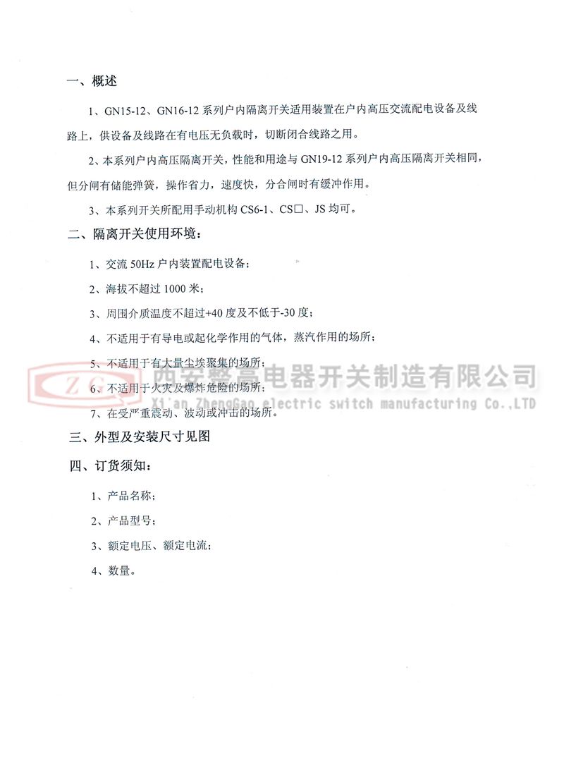 GN15、16戶內(nèi)高壓隔離開關(guān)