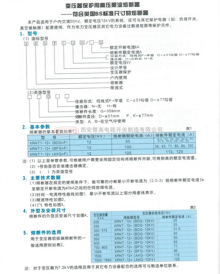 XRNT(BDGNF)系列變壓器保護(hù)用高壓限流熔斷器