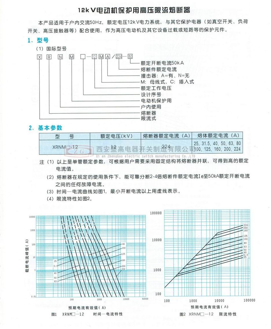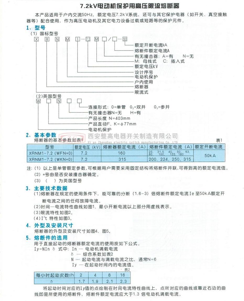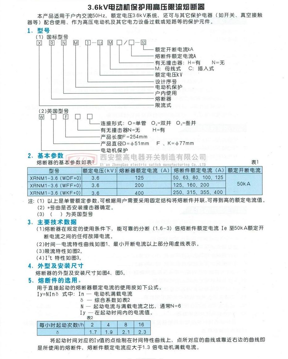 XRNM(WDFNO)系列電動機保護用高壓限流熔斷器