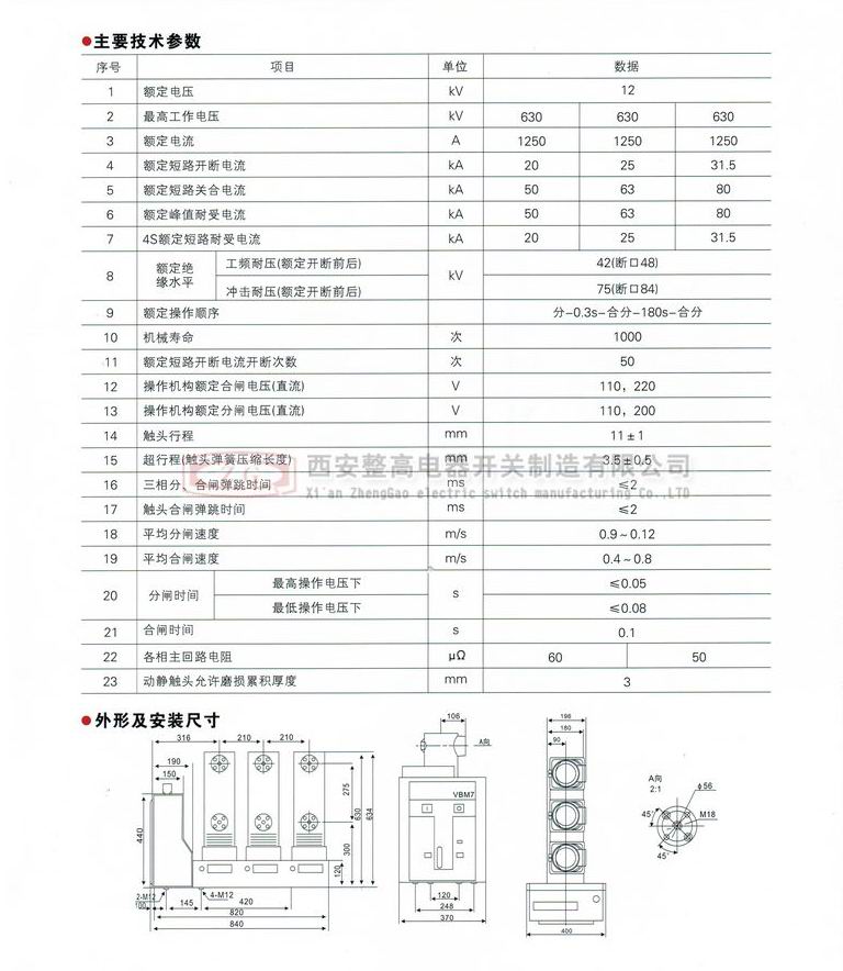 VS1(VBM7)-12系列側裝式戶內高壓真空斷路器